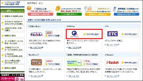 JCBの管理画面から、QUICPayに「今すぐ申し込む」のボタンをクリックします。
