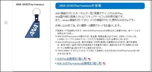 7-11で購入できる通常の「nanaco」カード(※1)と、ANA系のJCBカードで発行可能なキールルダー型の「QUICPay」(※2)は、nanacoと一体型の「QUICPay」で、名前を「QUICPay(nanaco)」と言います。